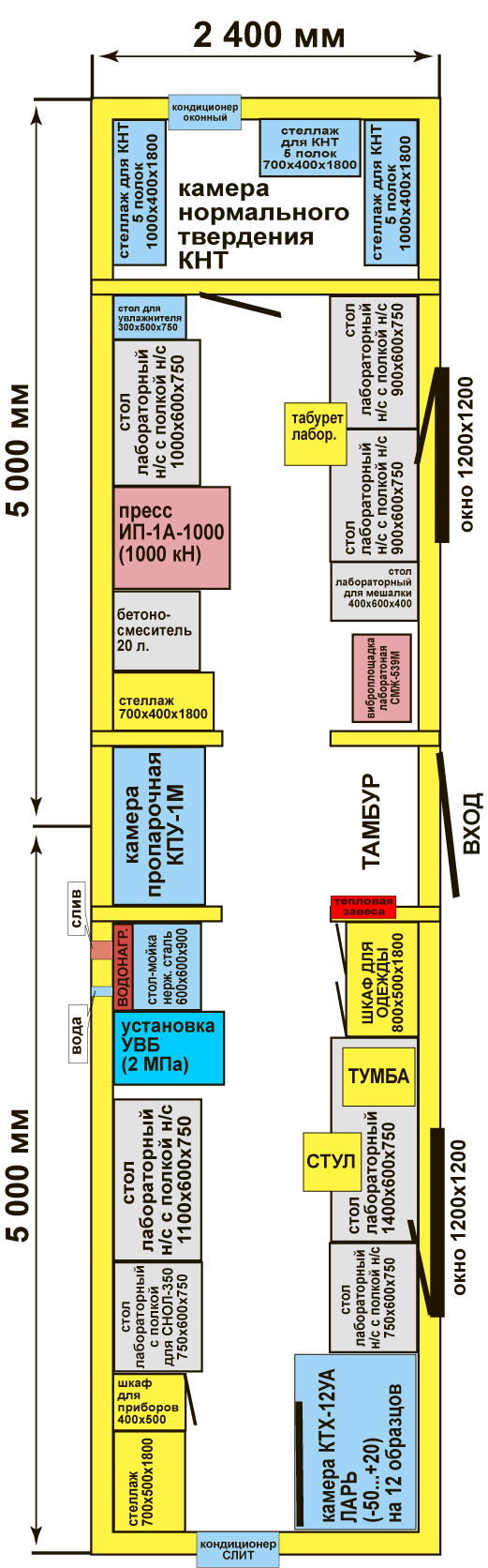 Лаборатория предназначена для оперативного контроля качества цемента, щебня и гравия, песка, бетона, раствора, бетонной и растворной смеси.