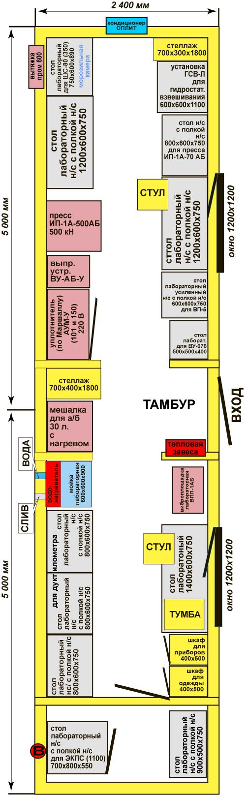 Схема размещения оборудования и лабораторной мебели